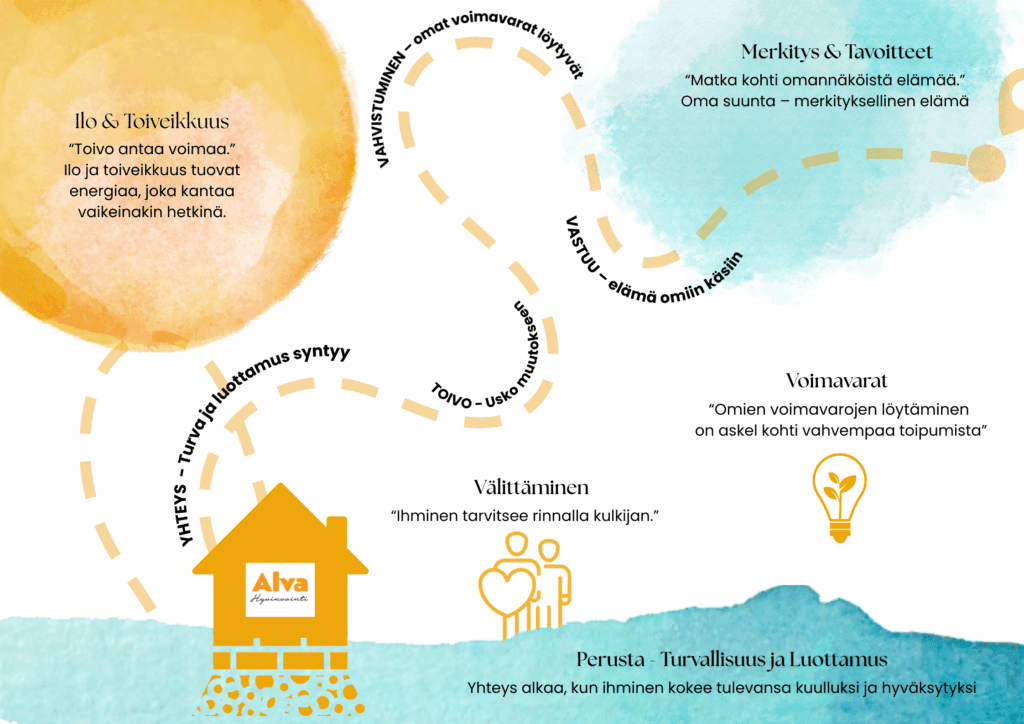 Arvo — Luottamus — Voimavarat — Jokaisen ainutlaatuinen elämä.